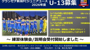 2026年度グランセナ新潟FCジュニアユースU13募集