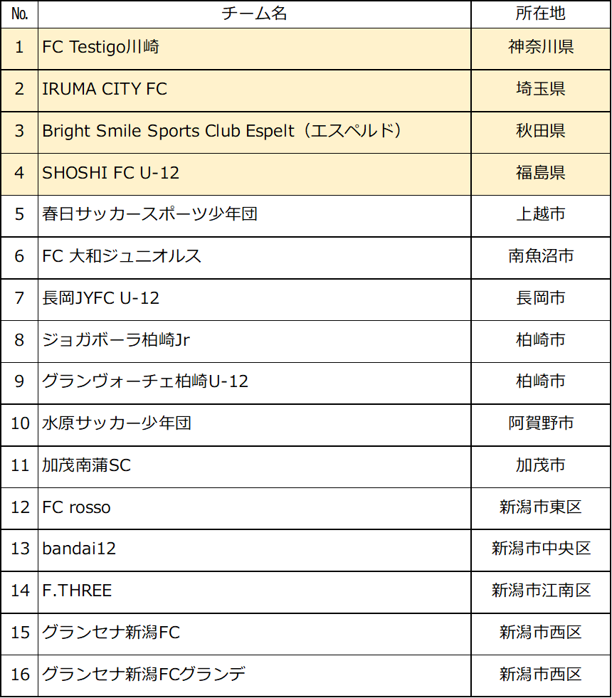 2025.7.1 トップカルチャー杯2025 ◆2025年7月12日(土)・13日(日)開催 ○出場チーム一覧 昨年度(2024)大会表彰チーム 優勝:FC CEDAC Jr. 準優勝:グランセナ新潟FCジュニア 第3位:春日サッカースポーツ少年団