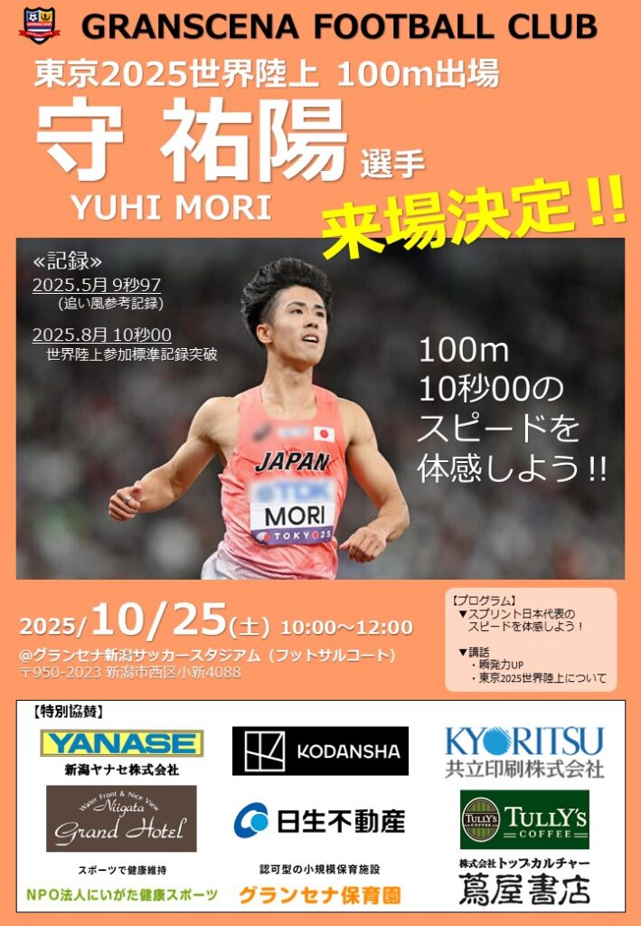 10/25(土)東京2025世界陸上100m出場『守祐陽選手』来場!